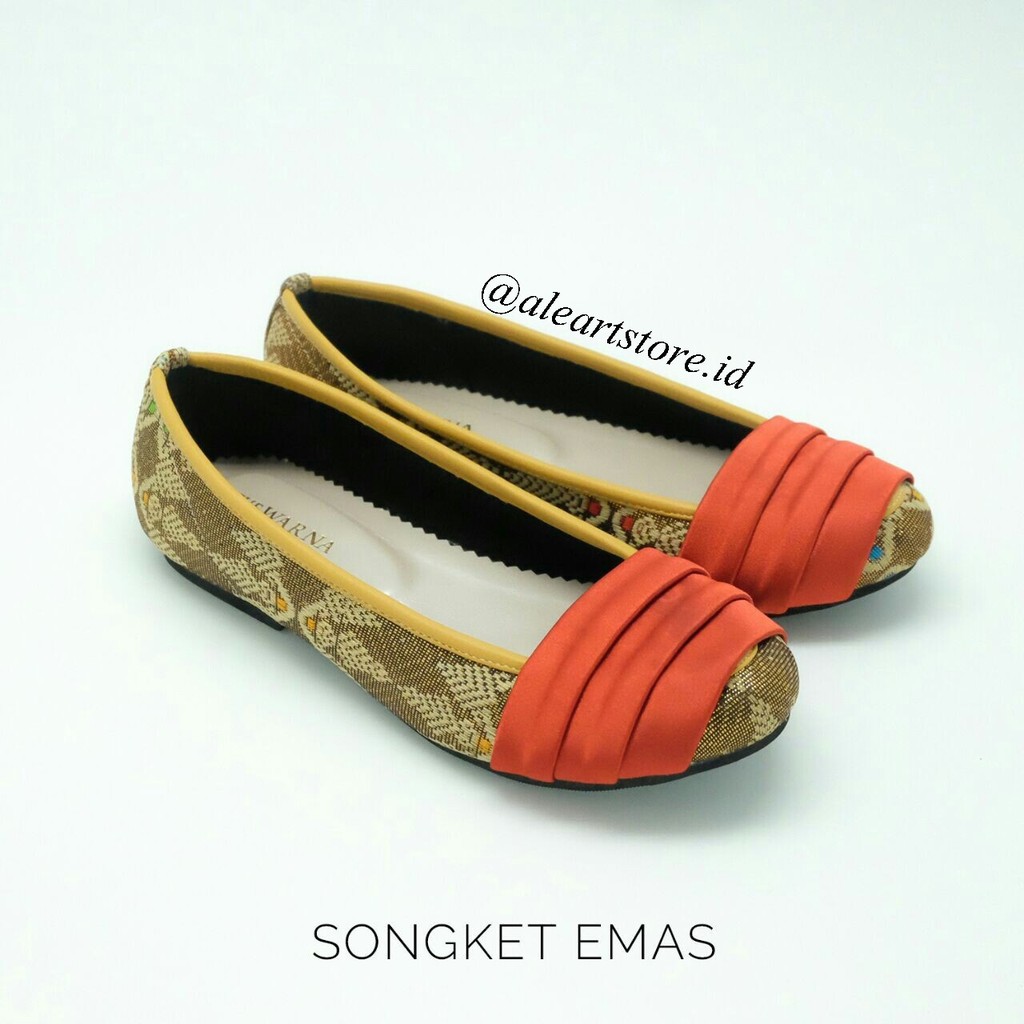 Jual Flat Shoes The Warna Sepatu Batik Songket Emas Indonesia Shopee Indonesia