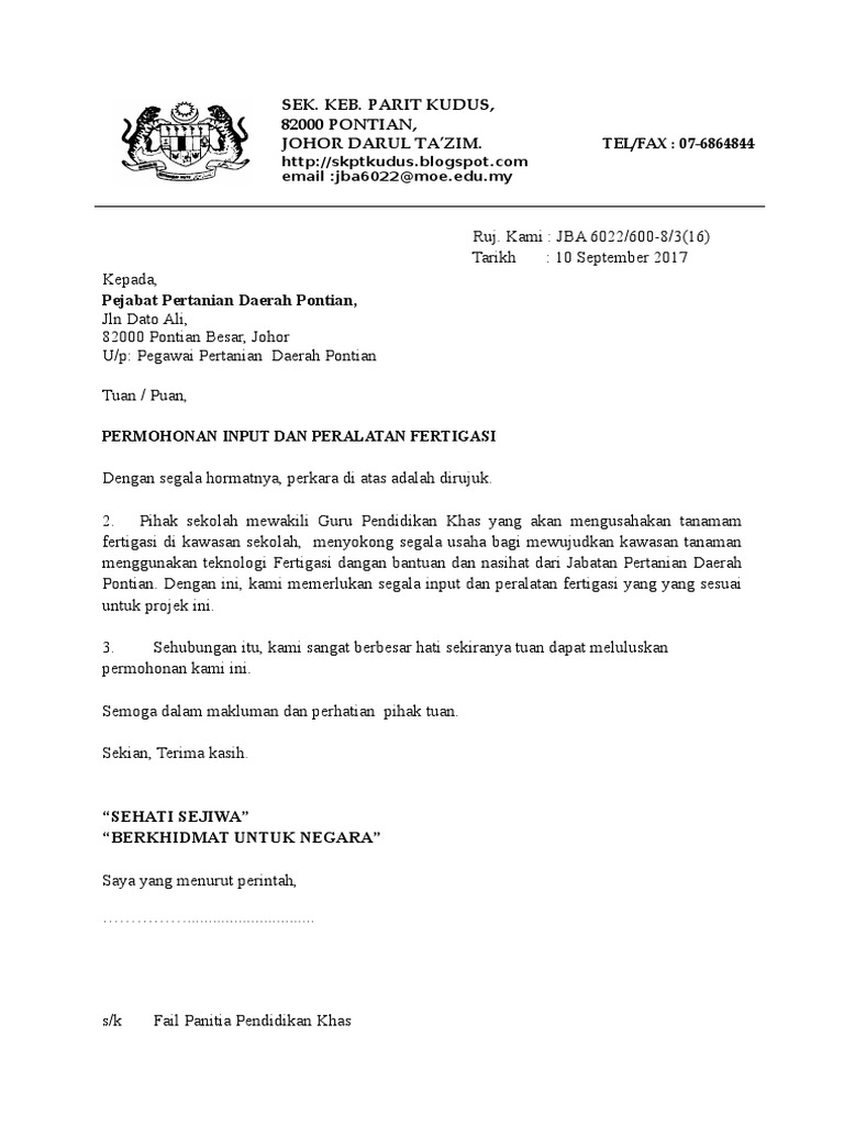 Surat Kepada Jabatan Pertanian Pdf